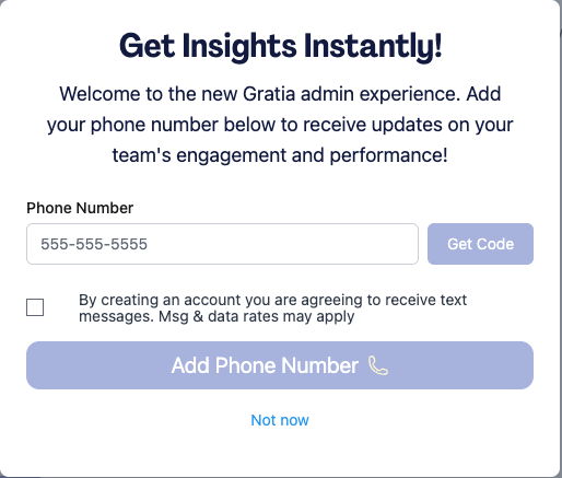 To sign in to the app, visit app.gratiahealth.com and sign in with your mobile number or email. The Admin Gratia Experience can be accessed on your mobile device or computer.